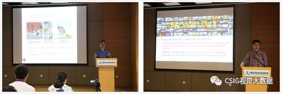 3日上午,西安交通大学的薛建儒教授作了“场景视觉大数据的深度学习与认知计算”的精彩报告,薛老师的报告首先综述大范围场景三维重建、事件层次演化推演的典型成果,然后介绍了课题组近年来面向无人车场景理解及交通事件演化推演方面的一些研究进展。接着,中科院自动化所徐常胜研究员阐述了“连接社会多媒体大数据”,徐老师的报告从以用户为中心的角度介绍了跨社会媒体网络数据挖掘和应用的基本研究框架,并结合研究案例介绍在这一框架下的两个基本任务:(1)From User:跨社会媒体网络关联挖掘;(2)For User: 跨社会媒体网络用户建模。下午,清华大学自动化系季向阳教授讲解了“视觉大数据计算成像与智能处理”,报告首先回顾深度卷机网络在物体分类、检测与分割的发展历史,其次介绍了全卷积网络在语义分割与实例掩模研究方面的进展,并探讨了面向实例关联语义分割任务的端到端全卷积网络解决方案,进一步扩展介绍视频三维全卷积动作的定位与识别技术,最后,从全光函数定义出发,探讨了如何从传统单一维度成像拓展到多维耦合成像与解耦重建的计算成像,并研究视觉大数据智能处理。中山大学数据科学与计算机学院郑伟诗教授作了“多模态视觉数据信息处理与应用”的精彩报告,郑老师介绍了他们课题组近期针对跨摄像机的行人大范围追踪、快速检索、动作识别与前期预测发展了轻量化和快速的多模态数据分析模型。